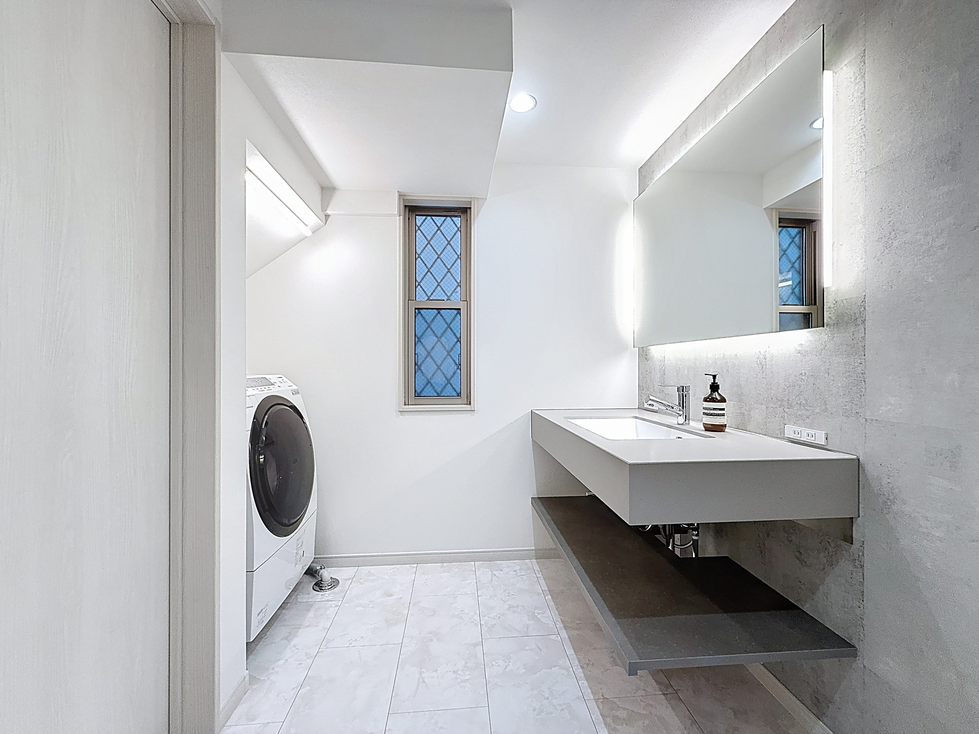 特にこだわったのは3点です。洗面所はホテルライクな雰囲気を目指し、大きな鏡や造作に近いサイズ感の洗面台を設置したいと希望しました。照明の光量も良い感じだと思います。