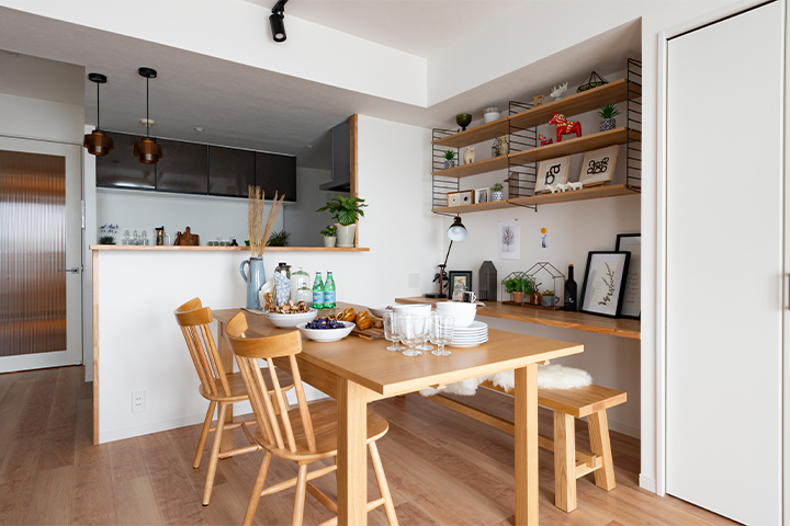 (ご主人)私たち夫婦が「わからない」ことを前提に、建築やデザイン、配置などのアドバイスをしていただき、こちらからも話しやすい関係性をつくっていただいたと嬉しく思います。 メーカーのショールームまで見に行って商品を決めたとしても、実際に自分の家に入るイメージがわかないときは、CGで合成していただいた画像を見せていただくなど、イメージしやすいように工夫して提案してくれたのもよかったです。(奥様)リノベーションの打ち合わせでは、たくさん選択肢を提示していただき、それぞれ1番気に入ったものを選べたので、どの部屋も満足いく仕上がりになりました。どのように使うのか、何を入れたいのか、丁寧にヒアリングした上で収納を作っていただいたので、無駄がありません。