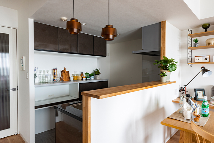(ご主人)当初、内装を変更するくらいの小規模なリフォームを考えていたのですが、お話しをするうちに夢が膨らんで「せっかくならこのタイミングで、思い切ってフルリノベーションをしよう!」ということになったんです。予算の上限を決め、キタセツには「こんなこともできますか?」と夢をたくさんお伝えしていきました。私たち夫婦が希望したことは、①対面キッチンにすること、②子どもたちが遊べるスペースを作ること、③子どもたちに個室があること、④収納量も確保することです。限られたスペースですが、やりたいことはお伝えしました。