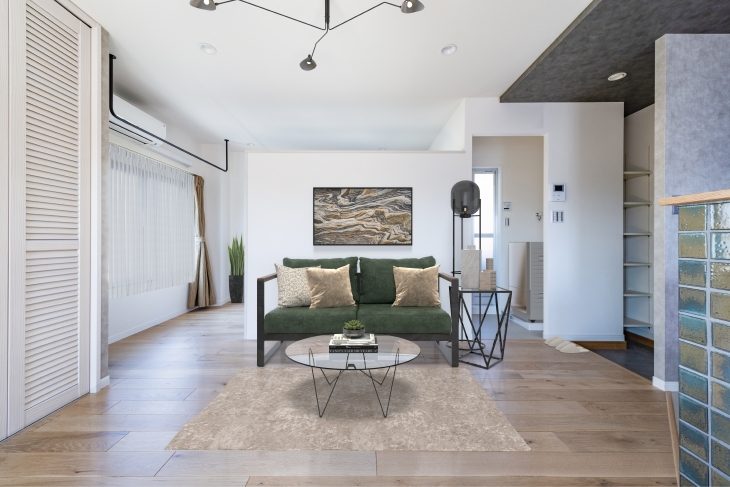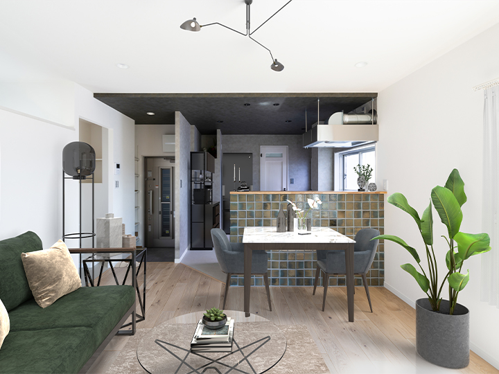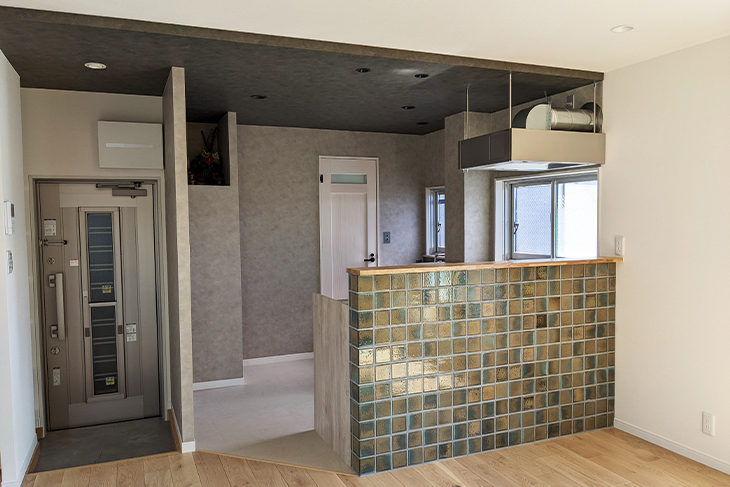 ご主人:初期の打合せでは、私が好きなブラウン系の色をベースとして進めていたのですが、キッチンの色が決まったところで、妻が好きなホワイト系に変わっていきました。当初イメージしていたものと異なりましたが、全体的にシックな落ち着いたテイストに仕上げていただきましたので、良かったと思っています。奥様:キッチンを、床に合わせて明るい木目に決めたことで、全体の色合いを合わせてコーディネートしていただきました。白をベースにグレーの壁紙を取り入れ、ステンレスやアイアンもアクセントになっています。大きな部屋ではないのですが、明るくて広さを感じますね。