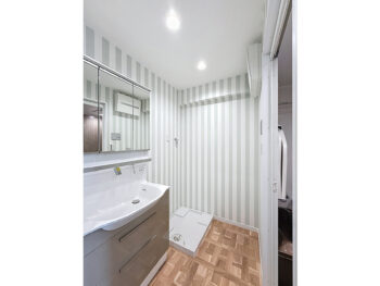 お手入れしやすく、収納が多いことからTOTO「オクターブ」を選ばれました。ストライプ柄のクロスが爽やかです。