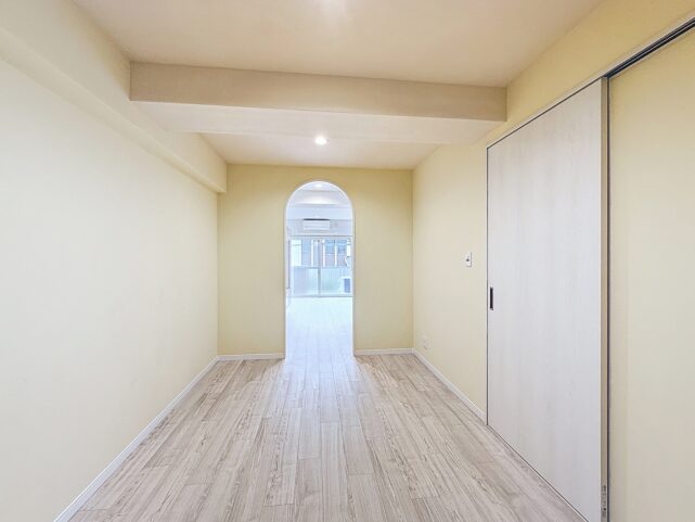 窓側に面していた和室と洋室を改修して広いLDKをつくり、リビングから寝室、寝室とウォークインクローゼットを行き来できるようになりました。